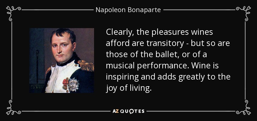 Clearly, the pleasures wines afford are transitory - but so are those of the ballet, or of a musical performance. Wine is inspiring and adds greatly to the joy of living.
