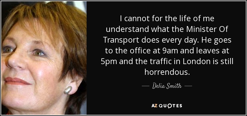 I cannot for the life of me understand what the Minister Of Transport does every day. He goes to the office at 9am and leaves at 5pm and the traffic in London is still horrendous.