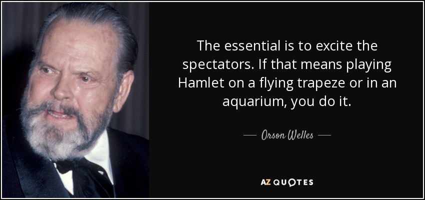 The essential is to excite the spectators. If that means playing Hamlet on a flying trapeze or in an aquarium, you do it.