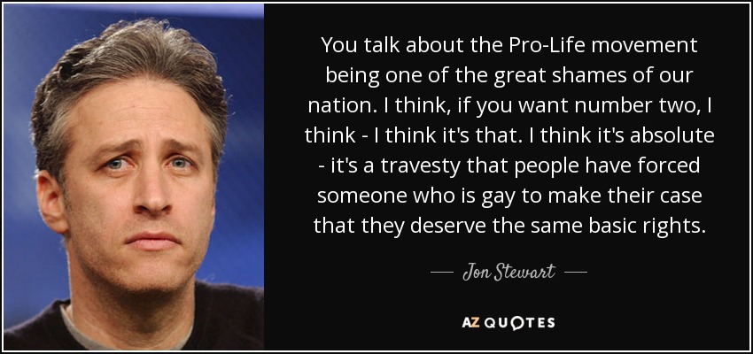 You talk about the Pro-Life movement being one of the great shames of our nation. I think, if you want number two, I think - I think it's that. I think it's absolute - it's a travesty that people have forced someone who is gay to make their case that they deserve the same basic rights.