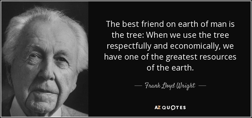 The best friend on earth of man is the tree: When we use the tree respectfully and economically, we have one of the greatest resources of the earth.