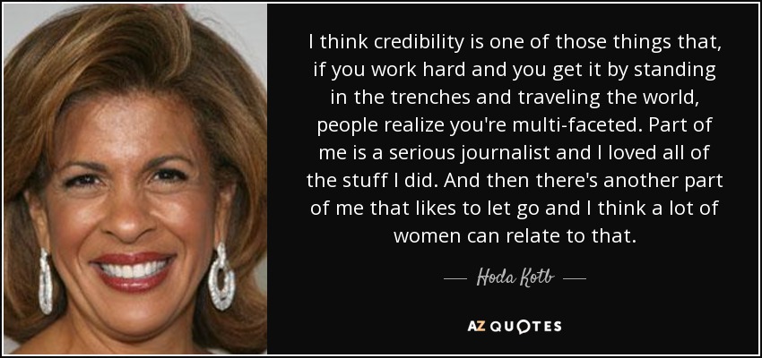 I think credibility is one of those things that, if you work hard and you get it by standing in the trenches and traveling the world, people realize you're multi-faceted. Part of me is a serious journalist and I loved all of the stuff I did. And then there's another part of me that likes to let go and I think a lot of women can relate to that.