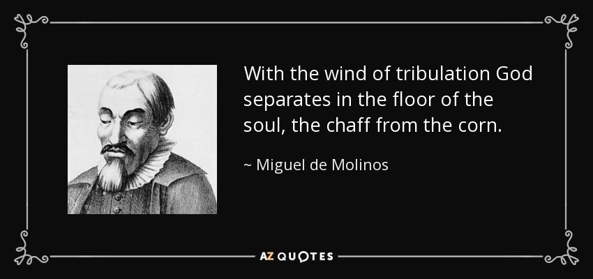 With the wind of tribulation God separates in the floor of the soul, the chaff from the corn.