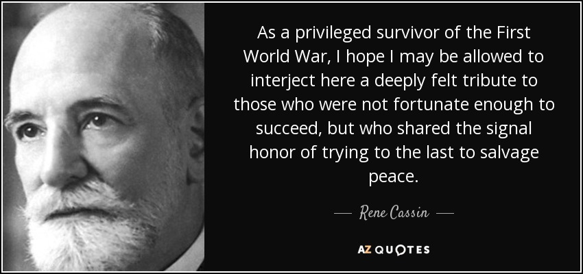 As a privileged survivor of the First World War, I hope I may be allowed to interject here a deeply felt tribute to those who were not fortunate enough to succeed, but who shared the signal honor of trying to the last to salvage peace.