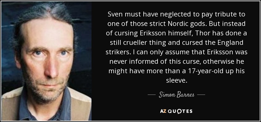 Sven must have neglected to pay tribute to one of those strict Nordic gods. But instead of cursing Eriksson himself, Thor has done a still crueller thing and cursed the England strikers. I can only assume that Eriksson was never informed of this curse, otherwise he might have more than a 17-year-old up his sleeve.