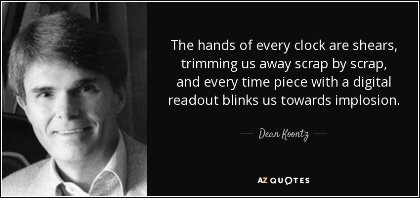 The hands of every clock are shears, trimming us away scrap by scrap, and every time piece with a digital readout blinks us towards implosion.