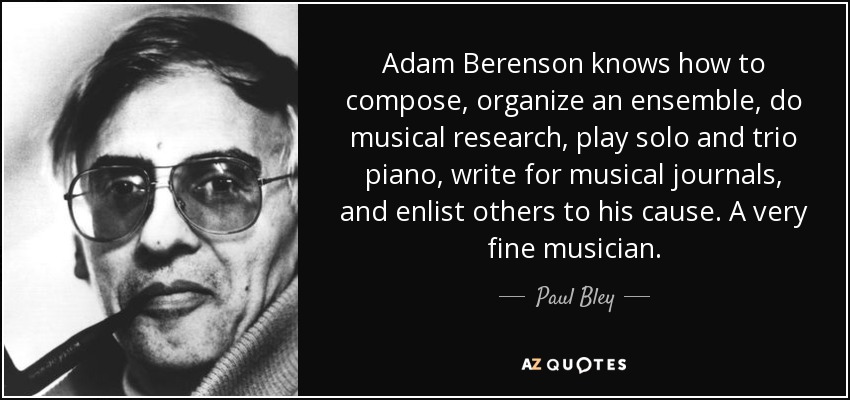 Adam Berenson knows how to compose, organize an ensemble, do musical research, play solo and trio piano, write for musical journals, and enlist others to his cause. A very fine musician.