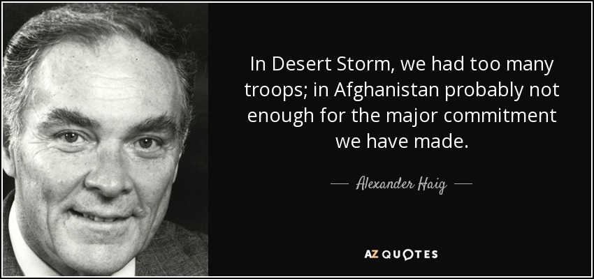 In Desert Storm, we had too many troops; in Afghanistan probably not enough for the major commitment we have made.