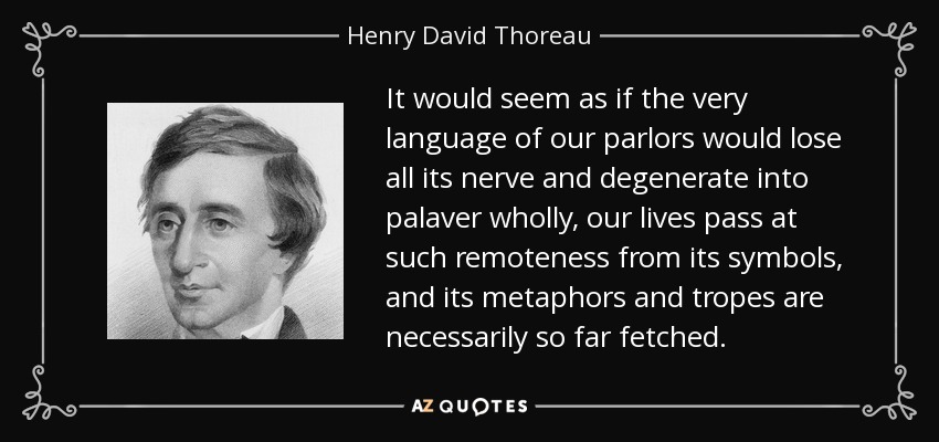 It would seem as if the very language of our parlors would lose all its nerve and degenerate into palaver wholly, our lives pass at such remoteness from its symbols, and its metaphors and tropes are necessarily so far fetched.