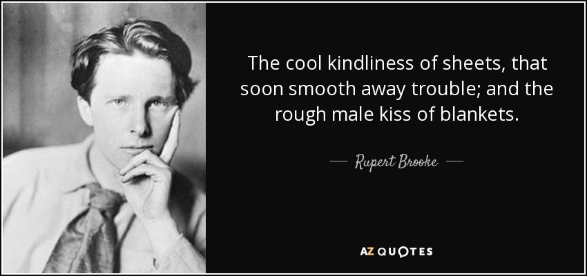 The cool kindliness of sheets, that soon smooth away trouble; and the rough male kiss of blankets.