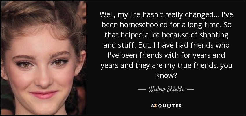 Well, my life hasn't really changed... I've been homeschooled for a long time. So that helped a lot because of shooting and stuff. But, I have had friends who I've been friends with for years and years and they are my true friends, you know?