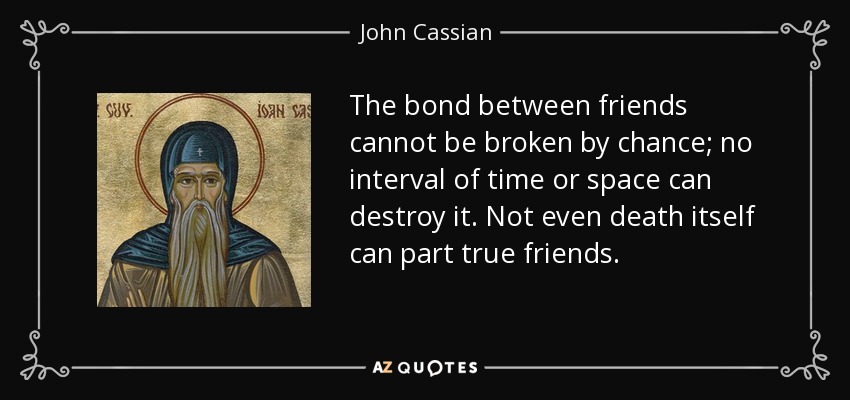 The bond between friends cannot be broken by chance; no interval of time or space can destroy it. Not even death itself can part true friends.