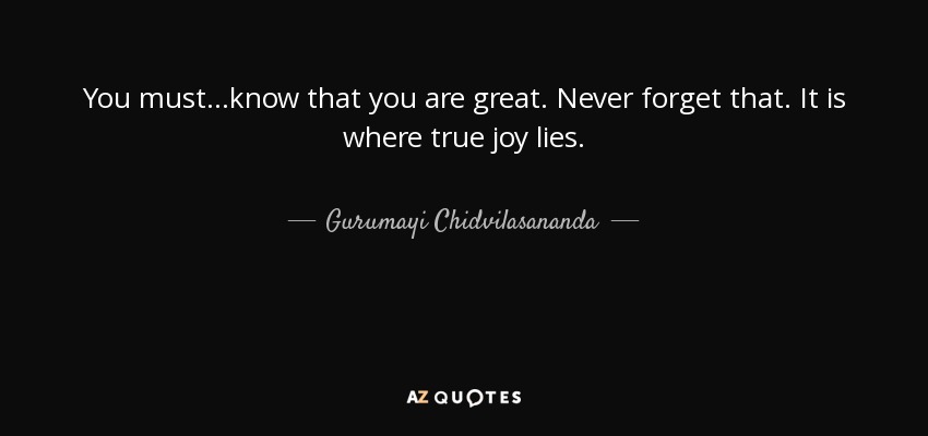 You must...know that you are great. Never forget that. It is where true joy lies.