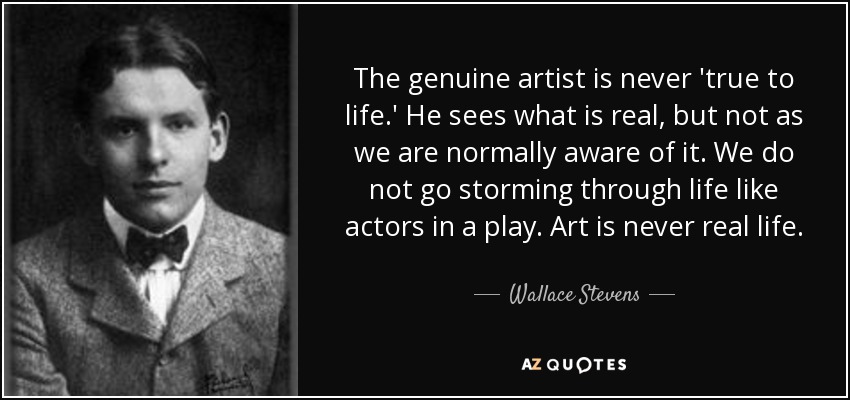 The genuine artist is never 'true to life.' He sees what is real, but not as we are normally aware of it. We do not go storming through life like actors in a play. Art is never real life.