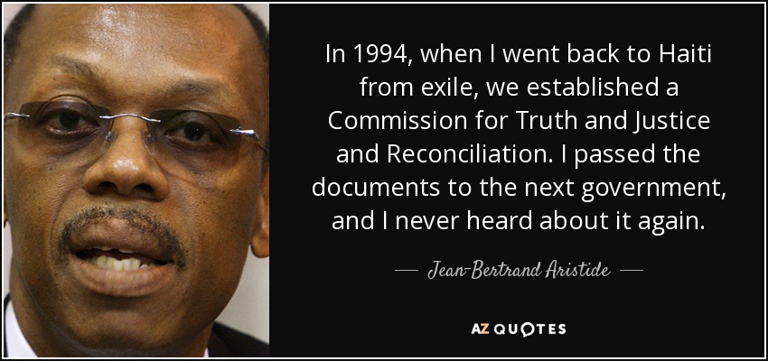 In 1994, when I went back to Haiti from exile, we established a Commission for Truth and Justice and Reconciliation. I passed the documents to the next government, and I never heard about it again.