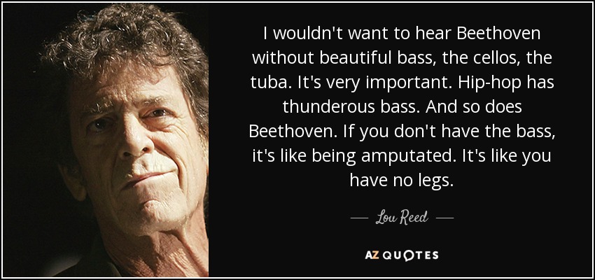 I wouldn't want to hear Beethoven without beautiful bass, the cellos, the tuba. It's very important. Hip-hop has thunderous bass. And so does Beethoven. If you don't have the bass, it's like being amputated. It's like you have no legs.