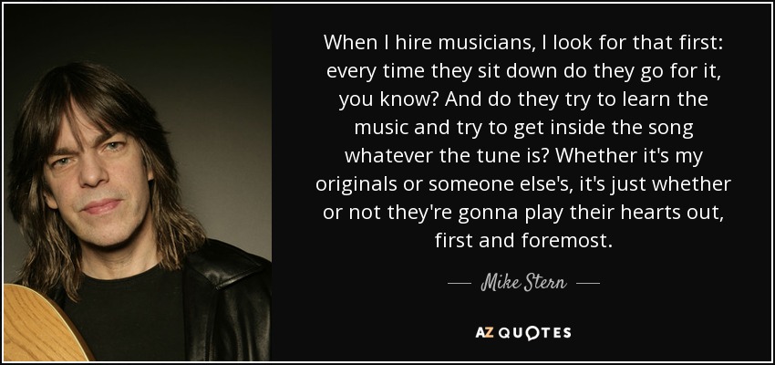 When I hire musicians, I look for that first: every time they sit down do they go for it, you know? And do they try to learn the music and try to get inside the song whatever the tune is? Whether it's my originals or someone else's, it's just whether or not they're gonna play their hearts out, first and foremost.
