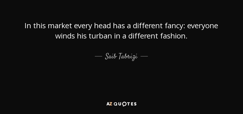 In this market every head has a different fancy: everyone winds his turban in a different fashion.