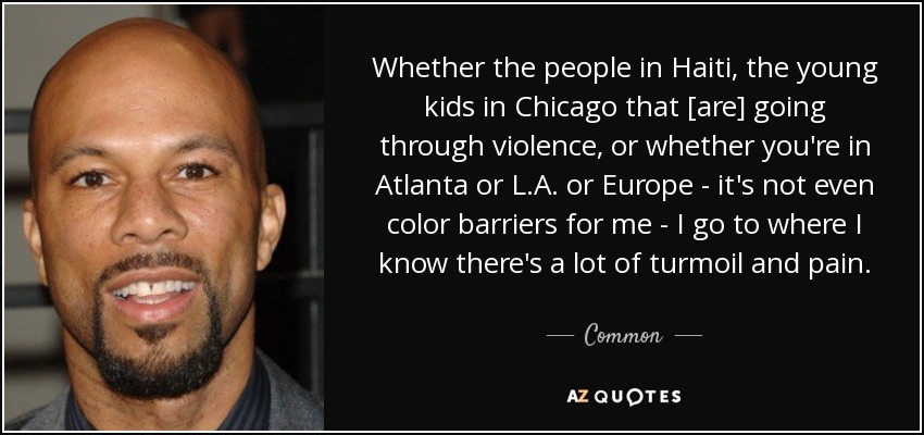 Whether the people in Haiti, the young kids in Chicago that [are] going through violence, or whether you're in Atlanta or L.A. or Europe - it's not even color barriers for me - I go to where I know there's a lot of turmoil and pain.