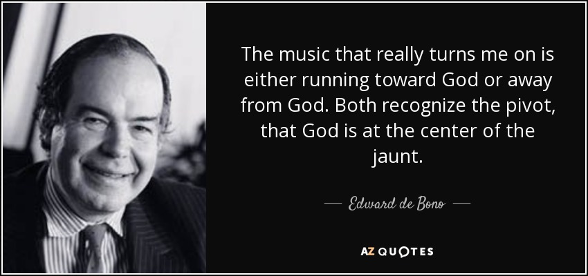 The music that really turns me on is either running toward God or away from God. Both recognize the pivot, that God is at the center of the jaunt.