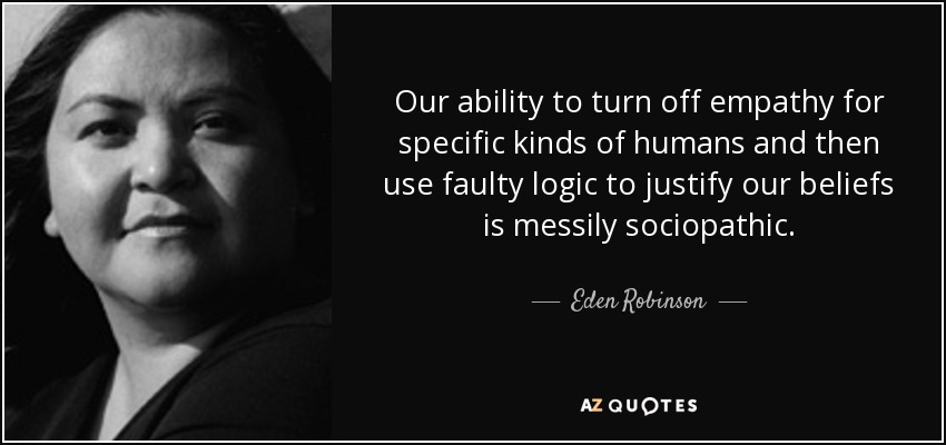 Our ability to turn off empathy for specific kinds of humans and then use faulty logic to justify our beliefs is messily sociopathic.