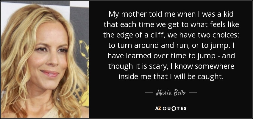 My mother told me when I was a kid that each time we get to what feels like the edge of a cliff, we have two choices: to turn around and run, or to jump. I have learned over time to jump - and though it is scary, I know somewhere inside me that I will be caught.