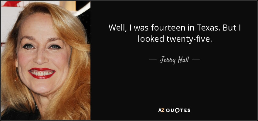 Well, I was fourteen in Texas. But I looked twenty-five.