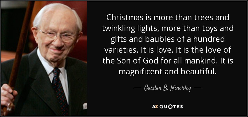 Christmas is more than trees and twinkling lights, more than toys and gifts and baubles of a hundred varieties. It is love. It is the love of the Son of God for all mankind. It is magnificent and beautiful.