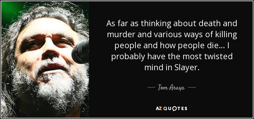 As far as thinking about death and murder and various ways of killing people and how people die... I probably have the most twisted mind in Slayer.