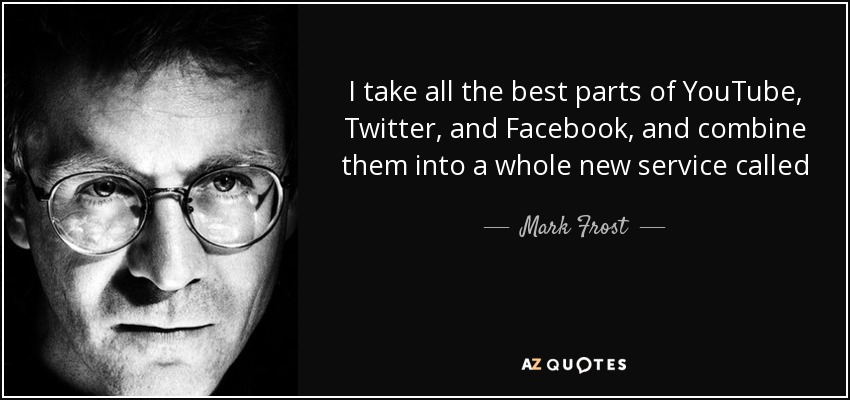 I take all the best parts of YouTube, Twitter, and Facebook, and combine them into a whole new service called … YouTwit-face.