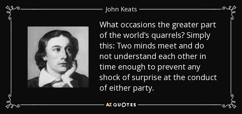 What occasions the greater part of the world's quarrels? Simply this: Two minds meet and do not understand each other in time enough to prevent any shock of surprise at the conduct of either party.