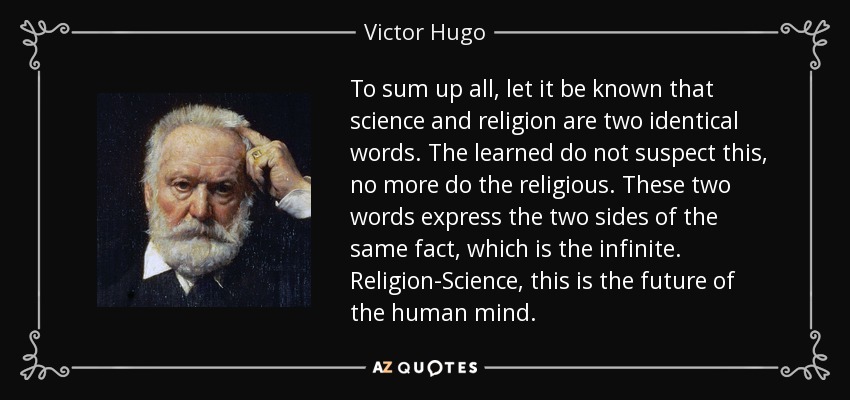 To sum up all, let it be known that science and religion are two identical words. The learned do not suspect this, no more do the religious. These two words express the two sides of the same fact, which is the infinite. Religion-Science, this is the future of the human mind.
