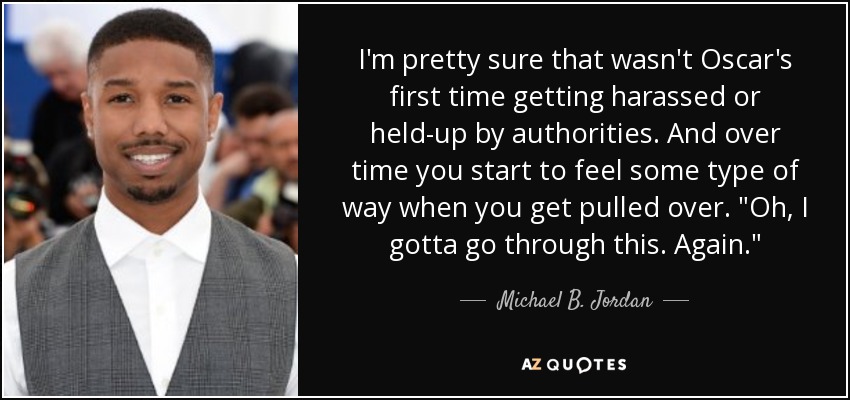 I'm pretty sure that wasn't Oscar's first time getting harassed or held-up by authorities. And over time you start to feel some type of way when you get pulled over. "Oh, I gotta go through this. Again."