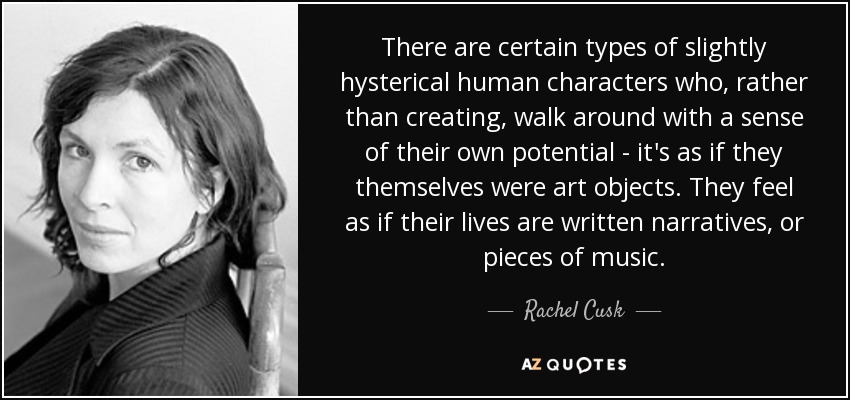 There are certain types of slightly hysterical human characters who, rather than creating, walk around with a sense of their own potential - it's as if they themselves were art objects. They feel as if their lives are written narratives, or pieces of music.