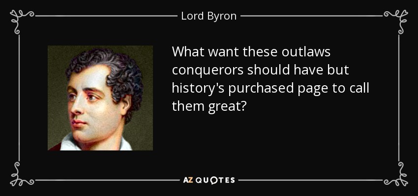 What want these outlaws conquerors should have but history's purchased page to call them great?