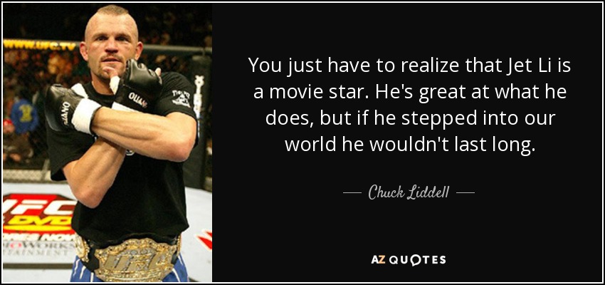 You just have to realize that Jet Li is a movie star. He's great at what he does, but if he stepped into our world he wouldn't last long.