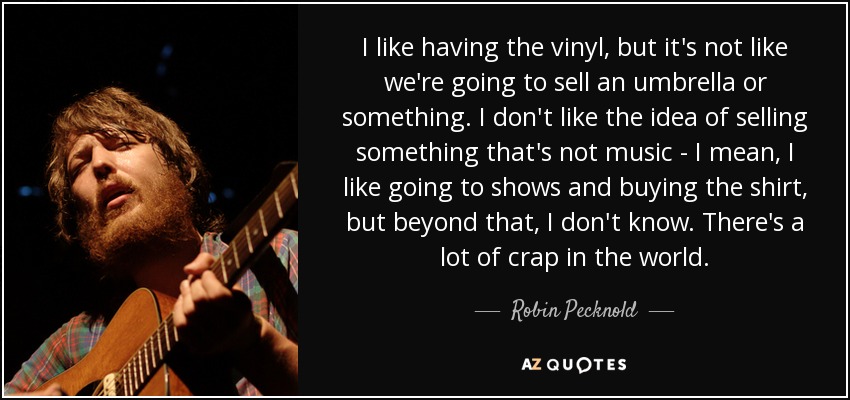 I like having the vinyl, but it's not like we're going to sell an umbrella or something. I don't like the idea of selling something that's not music - I mean, I like going to shows and buying the shirt, but beyond that, I don't know. There's a lot of crap in the world.