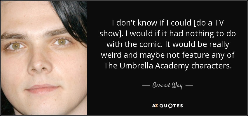 I don't know if I could [do a TV show]. I would if it had nothing to do with the comic. It would be really weird and maybe not feature any of The Umbrella Academy characters.