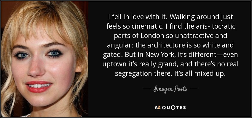 I fell in love with it. Walking around just feels so cinematic. I find the aris- tocratic parts of London so unattractive and angular; the architecture is so white and gated. But in New York, it’s different—even uptown it’s really grand, and there’s no real segregation there. It’s all mixed up.