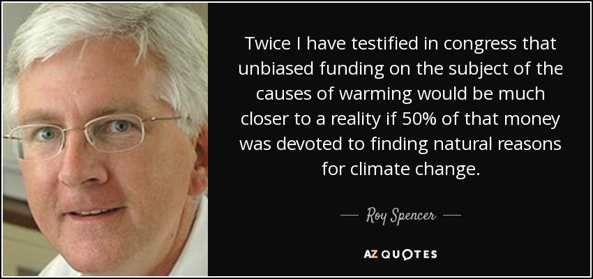 Twice I have testified in congress that unbiased funding on the subject of the causes of warming would be much closer to a reality if 50% of that money was devoted to finding natural reasons for climate change.