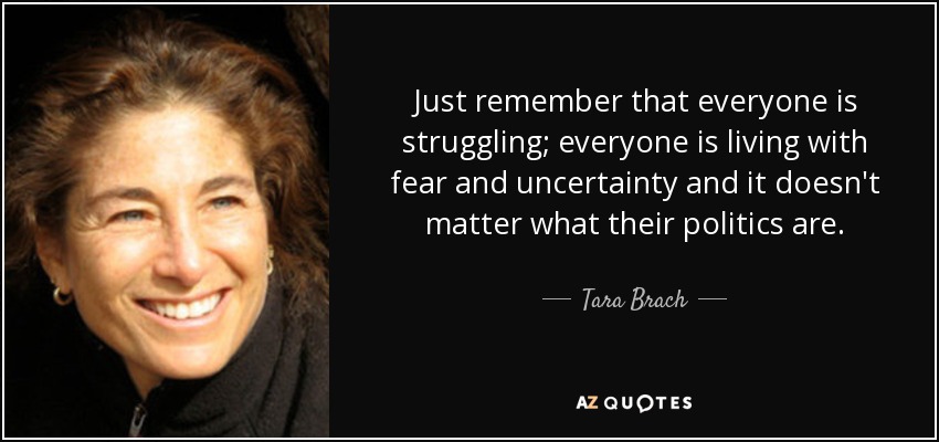 Just remember that everyone is struggling; everyone is living with fear and uncertainty and it doesn't matter what their politics are.