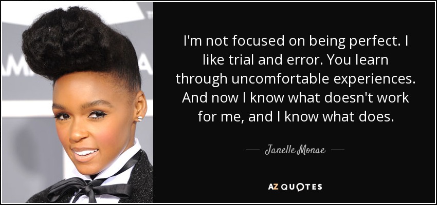 I'm not focused on being perfect. I like trial and error. You learn through uncomfortable experiences. And now I know what doesn't work for me, and I know what does.