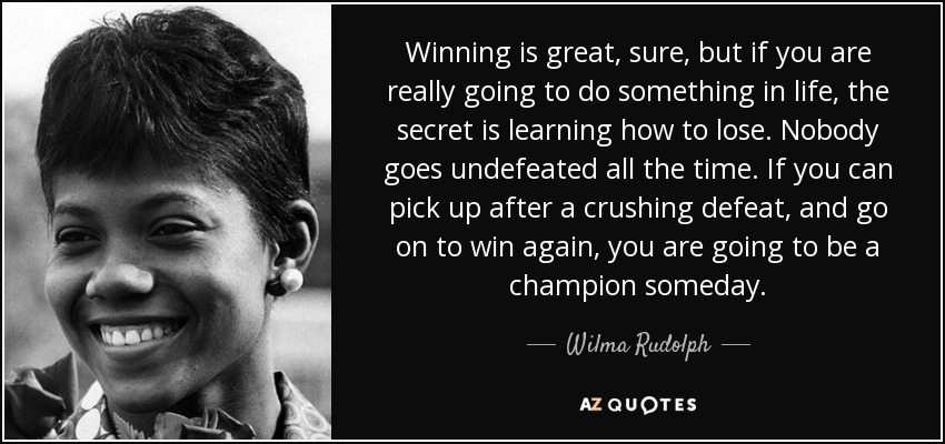 Winning is great, sure, but if you are really going to do something in life, the secret is learning how to lose.