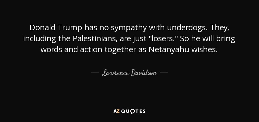 Donald Trump has no sympathy with underdogs. They, including the Palestinians, are just "losers." So he will bring words and action together as Netanyahu wishes.