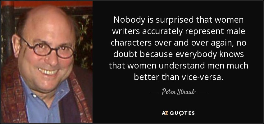 Nobody is surprised that women writers accurately represent male characters over and over again, no doubt because everybody knows that women understand men much better than vice-versa.