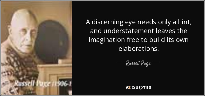 A discerning eye needs only a hint, and understatement leaves the imagination free to build its own elaborations.