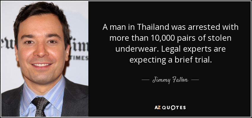 A man in Thailand was arrested with more than 10,000 pairs of stolen underwear. Legal experts are expecting a brief trial.