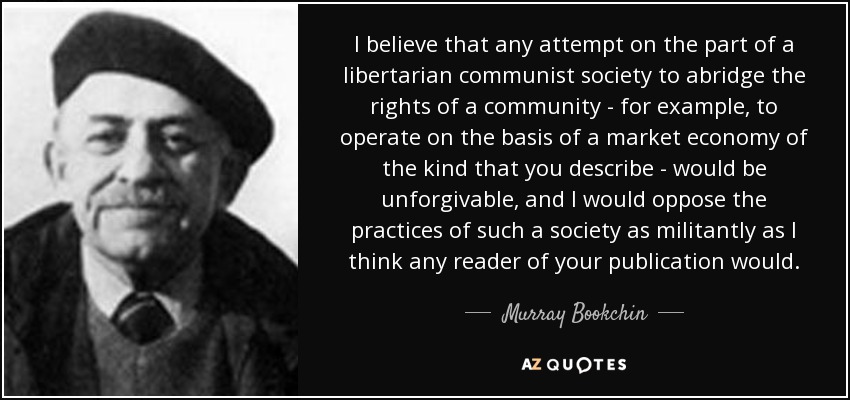 I believe that any attempt on the part of a libertarian communist society to abridge the rights of a community - for example, to operate on the basis of a market economy of the kind that you describe - would be unforgivable, and I would oppose the practices of such a society as militantly as I think any reader of your publication would.