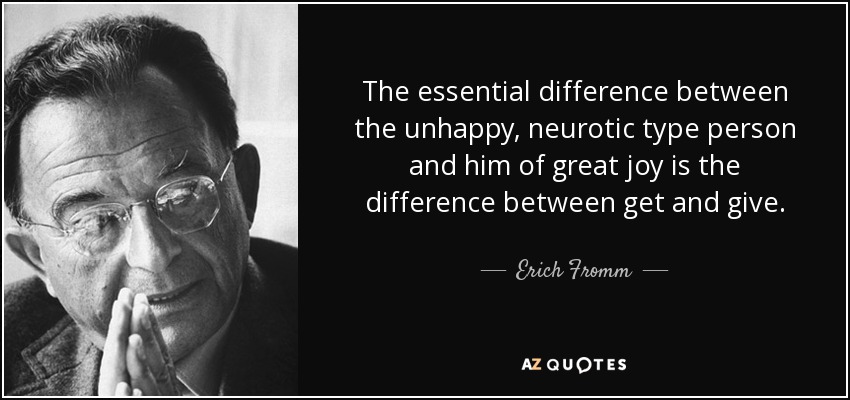 The essential difference between the unhappy, neurotic type person and him of great joy is the difference between get and give.