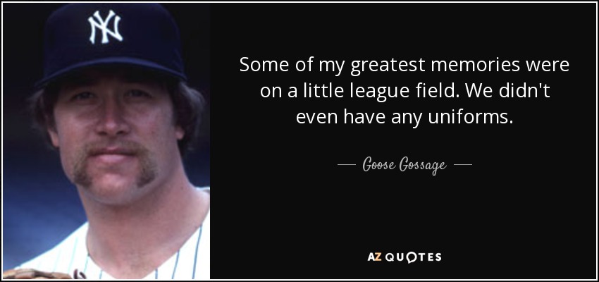 Some of my greatest memories were on a little league field. We didn't even have any uniforms.